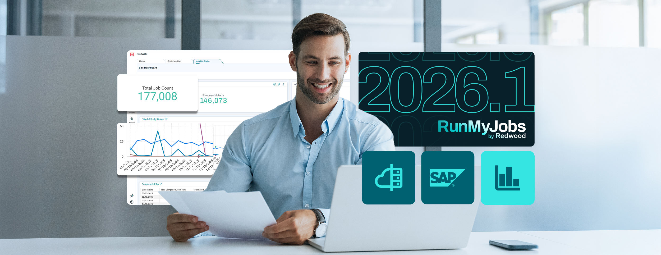 Get a glimpse of our superior data automation features and security standards by booking a demo of RunMyJobs by Redwood.