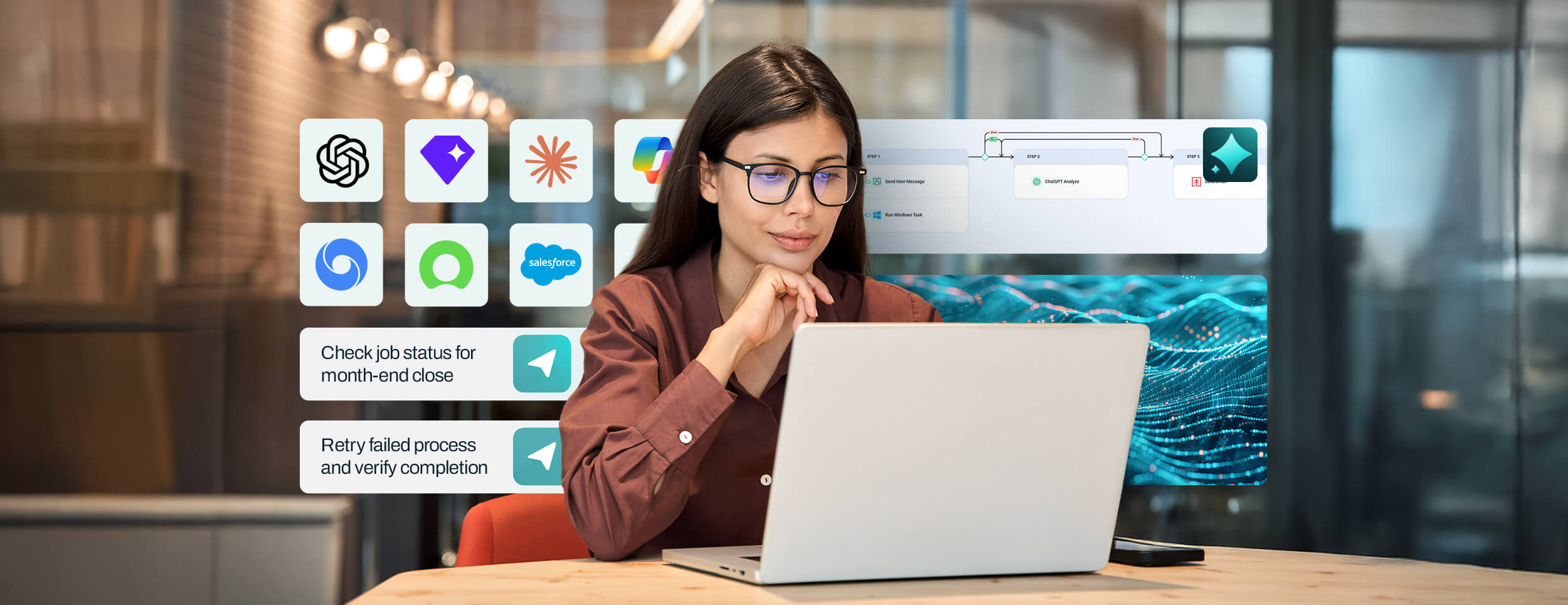 Orchestrate across ERP systems, data warehouses, business applications and other automation tools like RPA. Gain centralized control and monitoring across all audit processes.